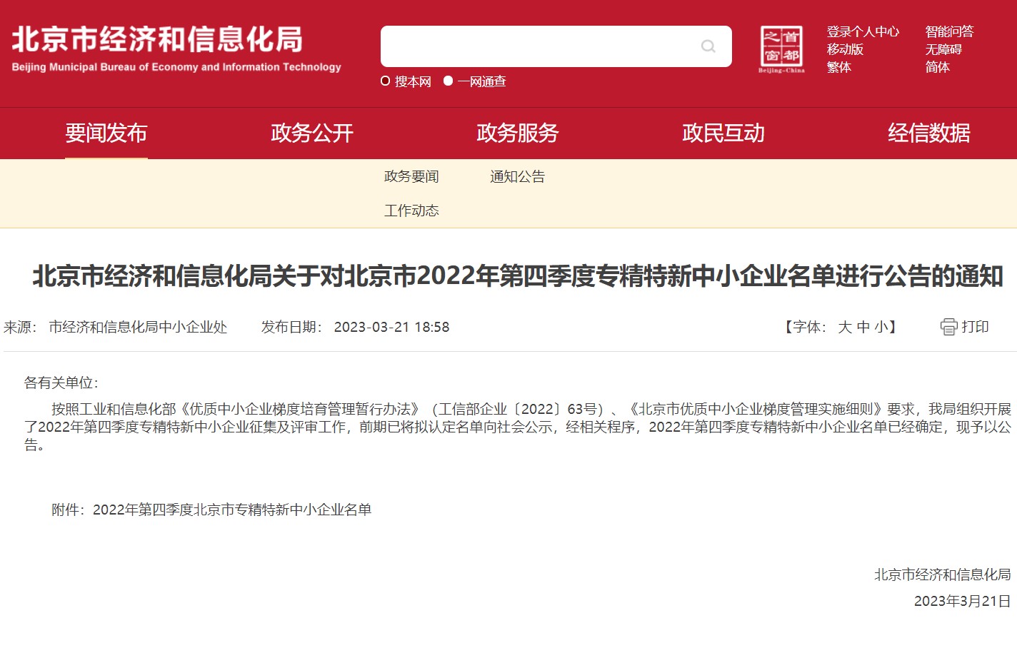 愛(ài)迪科(kē)森(sēn)繼“創新型中小(xiǎo)企業(yè)”後再添“專精✘↔☆ 特新”殊榮2023-03-24 -